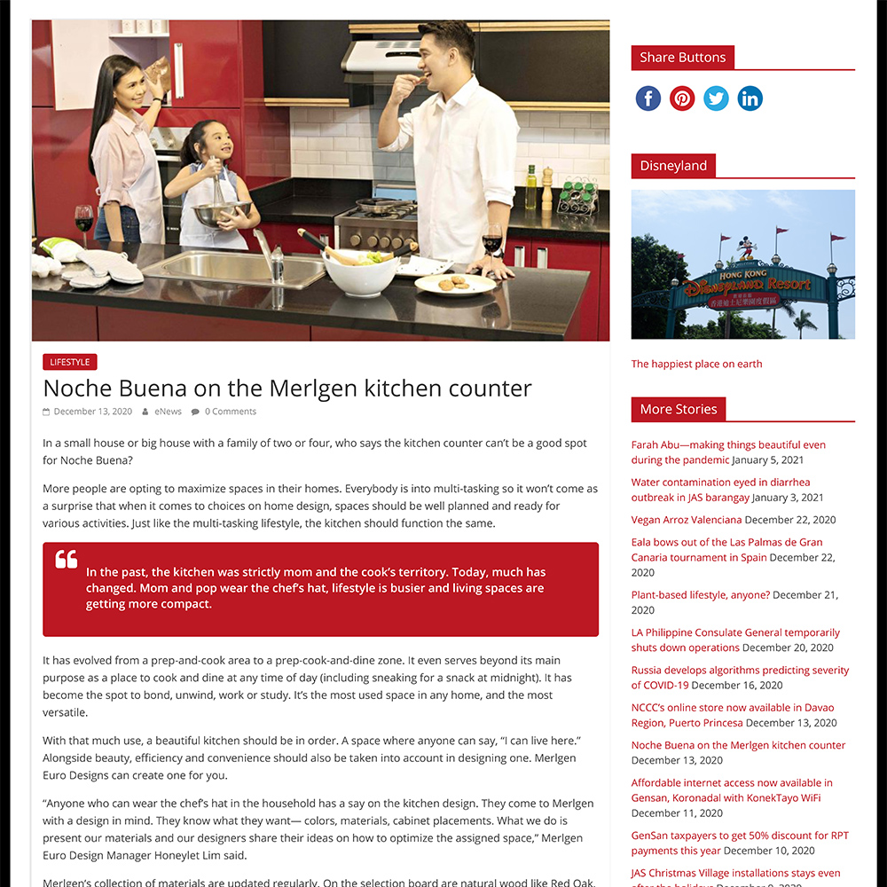 Increasingly the most used space in the home, especially during the pandemic, the kitchen brings the family together during the holidays. In our latest eNews.ph feature, imagine how special holiday moments can materialize in an elegantly designed kitchen with streamlined, modular kitchen cabinets.